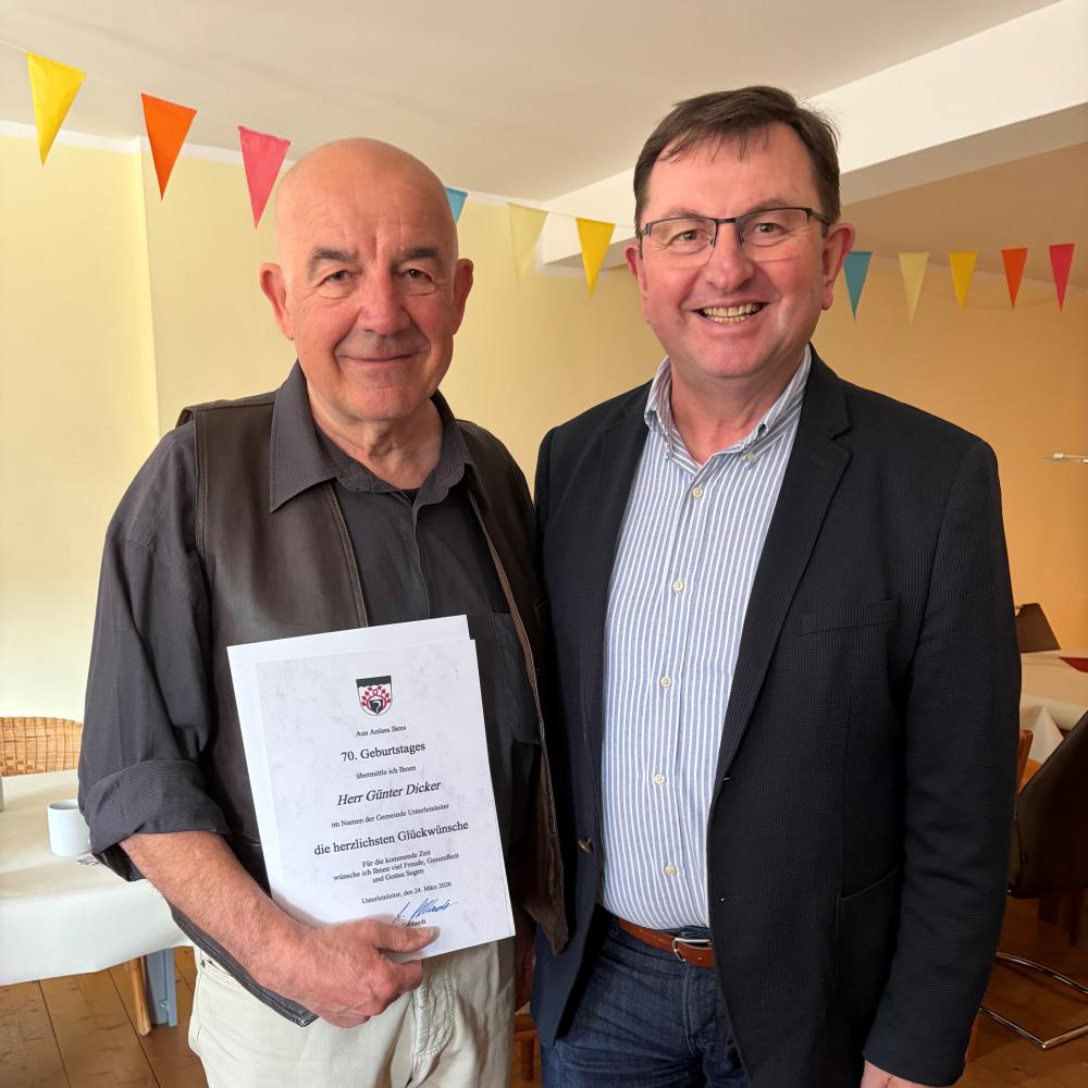 Am 24. März feierte Günter Dicker seinen 70. Geburtstag. Zu Gast waren neben der Familie und Freunden auch 1. Bürgermeister Alwin Gebhardt, welcher im Namen der Gemeinde sowie des gesamten...