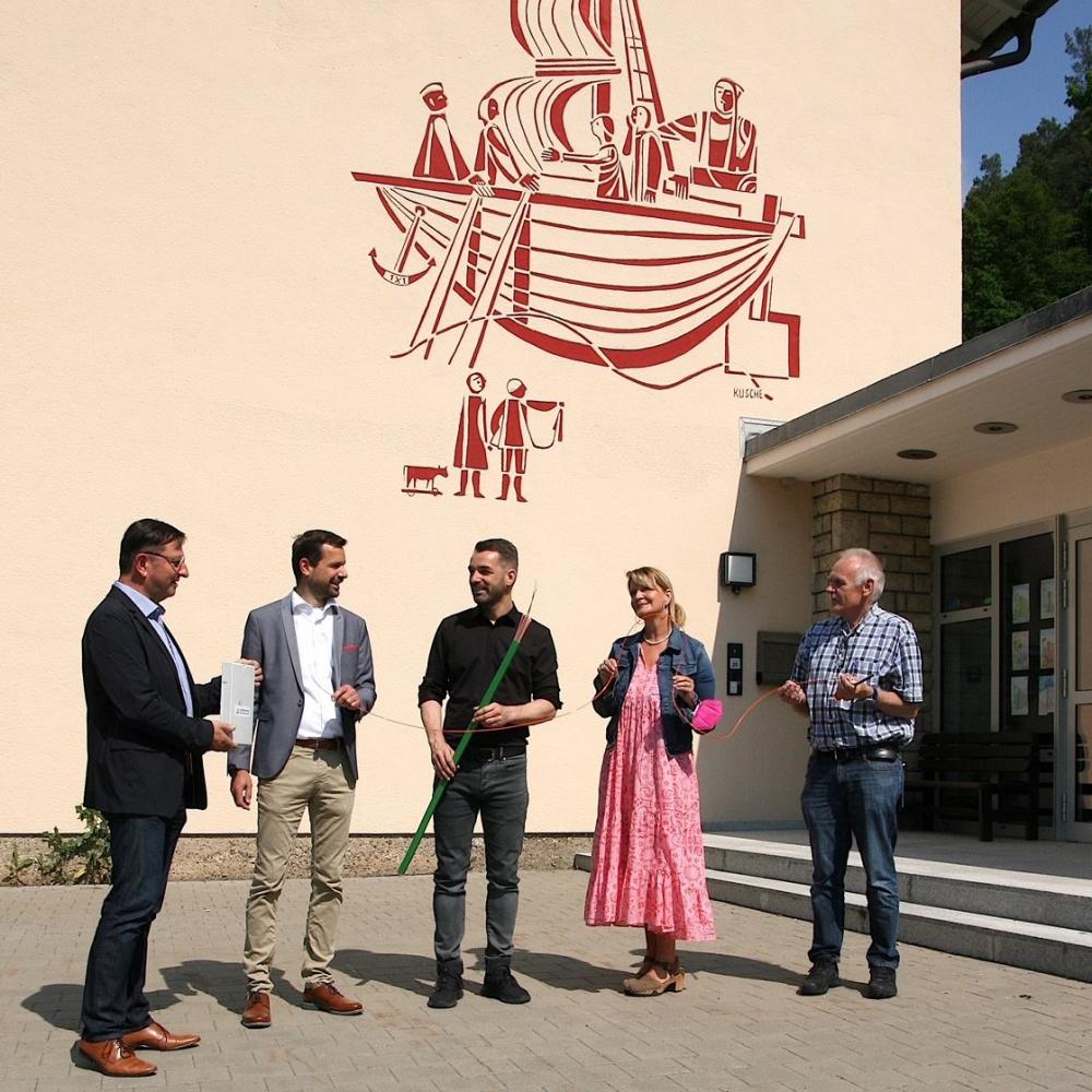 Die Grundschule ist das erste Gebäude in der Gemeinde Unterleinleiter mit direktem Glasfaseranschluss, mit dem Bandbreiten von 300 Megabit pro Sekunde und höher abrufbar sind. Die kleine Schule mit zwei Kombiklassen und insgesamt 37 Schülern ist damit eher an das schnelle Internet angeschlossen als beispielsweise das Landratsamt Forchheim oder das Gymnasium Fränkische Schweiz in Ebermannstadt. Hier laufen gerade erst die Ausschreibungen. Bürgermeister Alwin Gebhardt (DWV), Schulleiterin Antje Ullmann, Breitbandpate Andreas Kirchner sowie Jürgen Fiedler und Konrad Dresel von den Stadtwerken Ebermannstadt freuten sich bei der offiziellen Inbetriebnahme des Breitbandanschlusses, dass alles so schnell und reibungslos geklappt hatte, was vor allem auch der Baufirma Preißinger aus Kleinziegenfeld, die die Tiefbauarbeiten innerhalb von nur zwei Wochen fertiggestellt hatte, zu verdanken sei. Zugute kam der Gemeinde das neu aufgestellte Förderprogramm des Freistaats Bayern, aus dem es 50.000 Euro Zuschuss für die Gesamtmaßnahme in Höhe von 60.000 Euro gab.