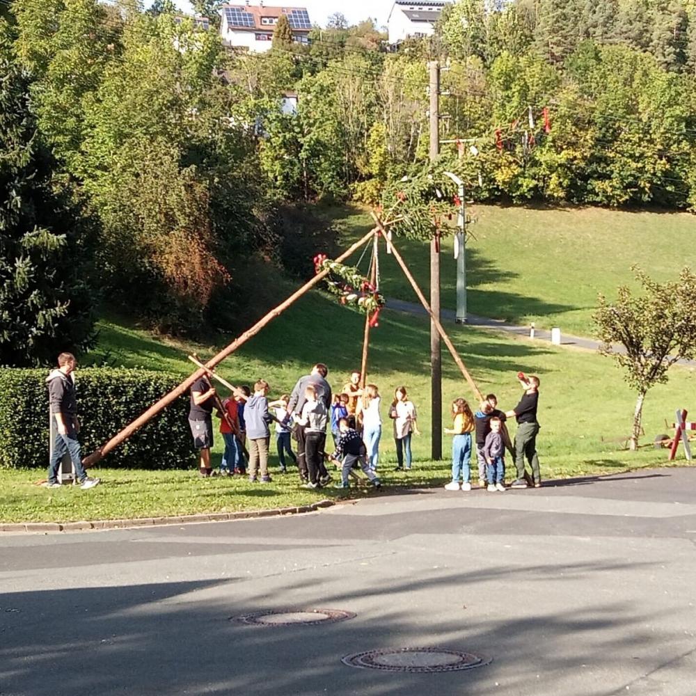 Eindrücke vom Aufstellen des Kirchweihbaumes in Dürrbrunn:
