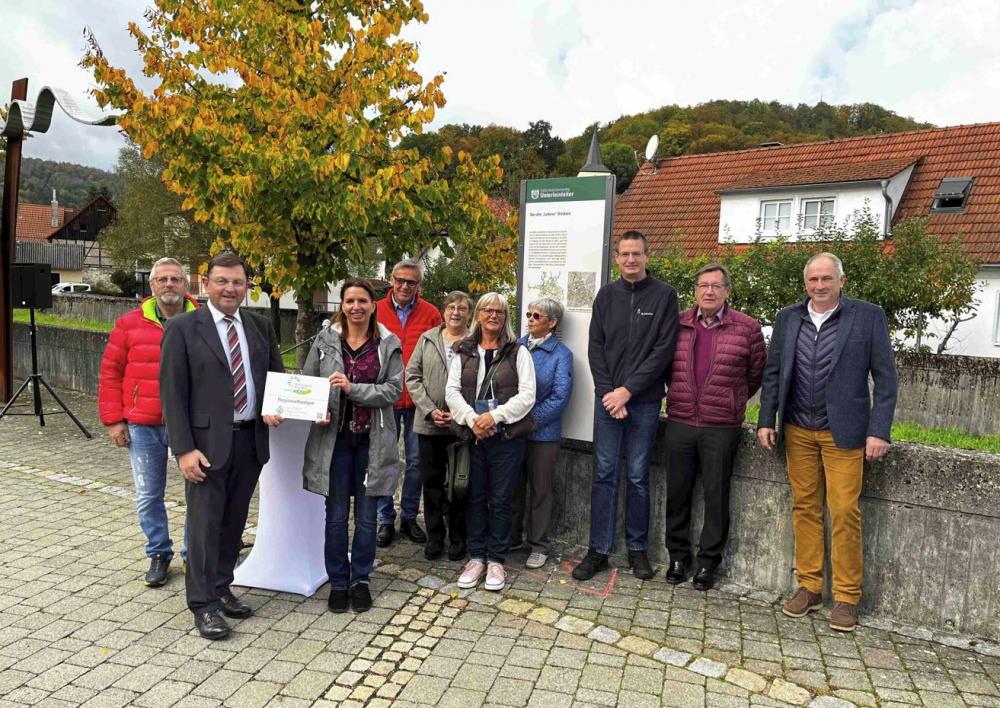 Wer in Unterleinleiter auf dem beliebten Rad- und Wanderweg entlang der Hochwasserfreilegung unterwegs ist, hat nun die Gelegenheit, mehr über die bewegte Ortsgeschichte zu erfahren. Am Sonntag, 15.10.23 stellte Bürgermeister Alwin Gebhardt seinen Gästen die neuen Informationstafeln vor, die über die Gründung des Dorfes, die NS-Zeit, die Bewässerungssysteme des Leinleitertals oder die beiden Ortskirchen informieren. Die Konzeption, Redaktion und Texterstellung übernahm Toni Eckert, der als ehemaliger Kulturreferent des Landkreises Forchheim in akribischer Archiv- und Quellenarbeit geübt ist. Er verstand es, die historischen Daten anschaulich aufzubereiten. Unterstützt wurde er von Dr. Roland Lindacher, der das ansprechende Layout der Schilder übernahm. Der ortsansässige Schmied Wolfgang Zolleis, dessen Frau die Ideengeberin des Projektes war, fertigte die passenden Halterungen für die Schilder.
