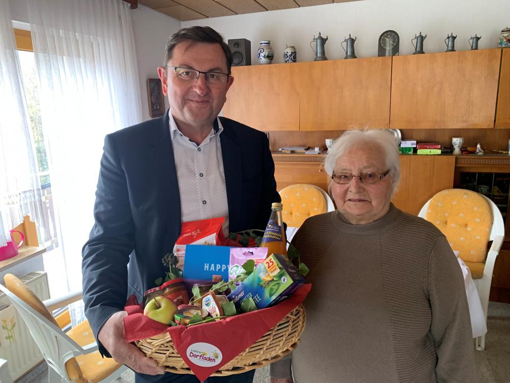 Am 10. April feierte Elfriede Schmeußer ihren 85. Geburtstag. Zu Gast waren neben der Familie und Bekannten auch 1. Bürgermeister Alwin Gebhardt, welcher im Namen der Gemeinde sowie des gesamten Gemeinderates herzlich gratulierte und einen Präsentkorb übergab.