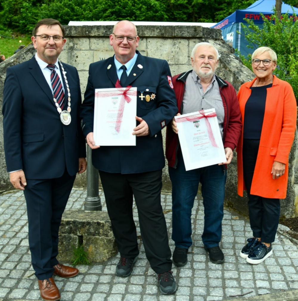 Besondere Würdigung erfuhren zudem Peter Jarosch und Matthias Dorsch, die von der Gemeinde Unterleinleiter zu Ehrenkommandanten ernannt wurden. Beide haben sich jahrzehntelang in verantwortungsvollen Positionen für die Feuerwehr Dürrbrunn eingesetzt.